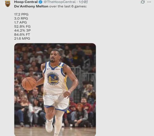 勇士過去15場比賽,梅爾頓出戰了13場,勇士戰績為11勝2負;他缺席的兩場比賽,勇士0勝2負。最近6場比賽,梅爾頓場均出戰21.6分鐘,能砍下17.2分3籃板1.7助攻,投籃命中率52.8%,三分命中率44.2%,罰球命中率84.6%。
