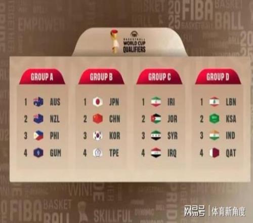 在男籃世界杯正式拉開帷幕之前,各大洲的球隊均需先參與預(yù)選賽的角逐。預(yù)選賽劃分為兩個階段,在第一階段,亞洲區(qū)被劃分為ABCD四個小組,每組包含四支球隊。小組賽共設(shè)置三個窗口期,在此期間,各小組內(nèi)的球隊將兩兩交鋒。最終,每個小組的前三名球隊將成功晉級至下一階段。