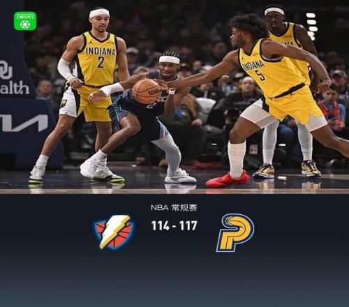 北京時間1月24日NBA 常規賽,俄克拉荷馬雷霆對陣印第安納步行者。半場雷霆53-58步行者,最終雷霆114-117步行者。俄克拉荷馬雷霆亞歷山大47分4板4助,霍姆格倫25分13板3助;印第安納步行者內姆布哈德27分7板11助,賈雷斯-沃克26分4板3助。