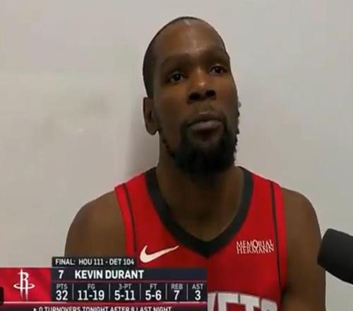 北京時(shí)間今日,在NBA常規(guī)賽中,休斯頓火箭隊(duì)在客場(chǎng)以111-104擊敗了底特律活塞隊(duì),終結(jié)了對(duì)方的四連勝。賽后,火箭球星杜蘭特接受了采訪。