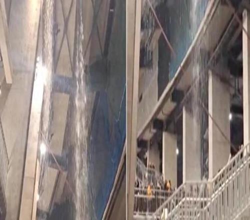 剛剛完成階段性翻新、重新開放僅兩個月的諾坎普球場,竟在一場大雨中“現了原形”——雨水順著臺階傾瀉而下,直接灌入看臺區域,令現場觀眾措手不及。