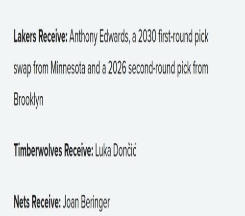 湖人得到:愛德華茲、森林狼2030年首輪簽互換權(quán)、籃網(wǎng)2026年次輪簽